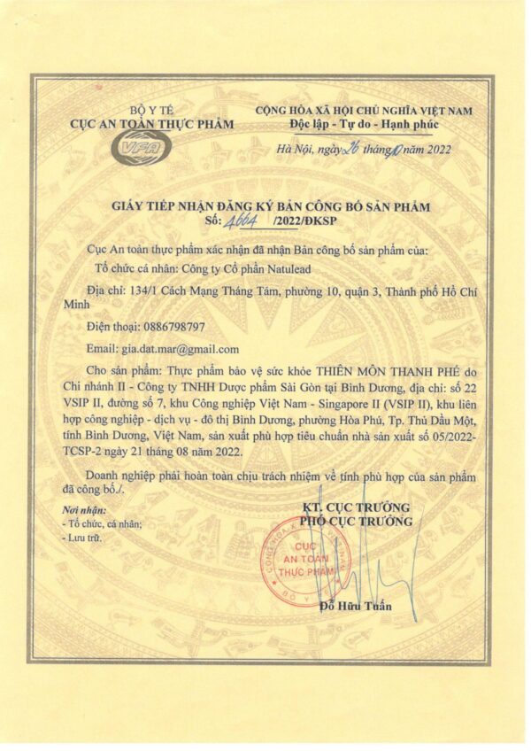 • Phân phối & tiếp thị: Công ty Cổ phần Natulead