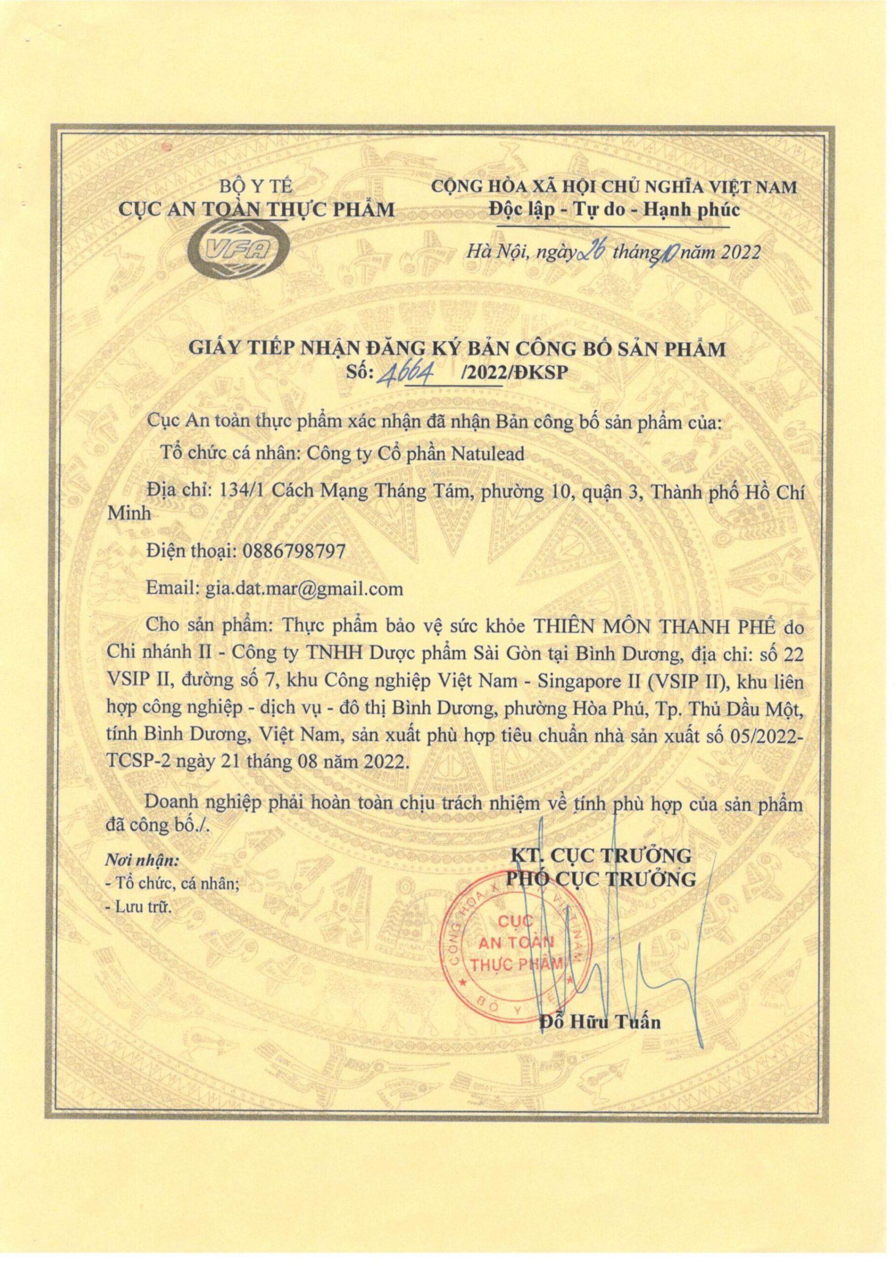 • Số đăng ký: 4664/2022/ĐKSP